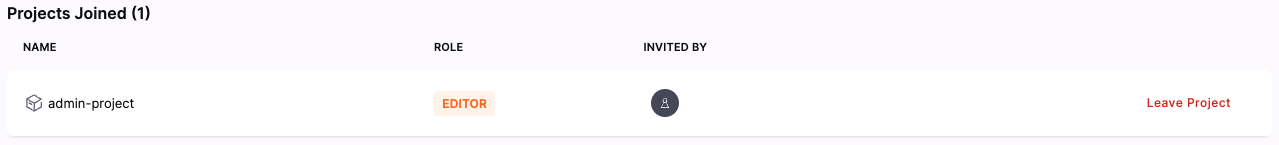 In the settings page, scroll to the Projects Joined section. Here you will see a list of all the projects you are a part of, identify the project you’d like to leave and click on the Leave Project button: